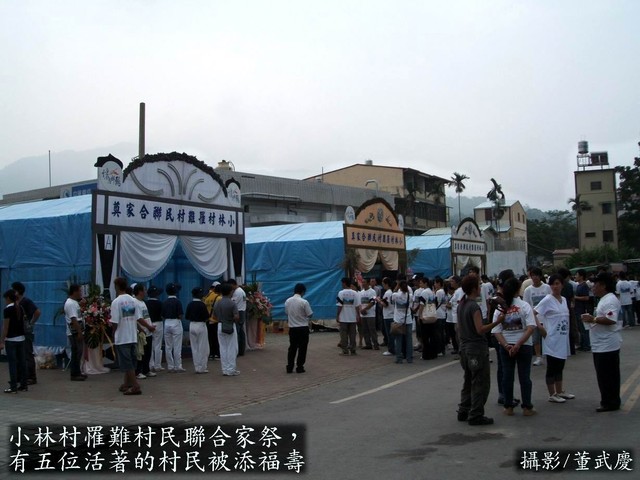 設籍於小林聚落9-19鄰的死亡人數為382人,失蹤15人;設籍於小林村五里埔6-8鄰,但實際居住在小林聚落的死亡人數為9人,失蹤1人;設籍在甲仙鄉西安村,嫁入小林聚落尚未辦理移入的死亡人數為1人;設籍在甲仙鄉關山村,但實際居住在小林聚落的死亡人數為1人。居住在小林聚落但尚未取得國籍的外籍配偶,死亡人數為2人;大陸配偶,死亡人數為1人。在小林聚落居住或工作但設籍其他鄉鎮市者,加上回來度假但設籍臺灣其他鄉鎮市的親友,死亡人數為48人(戶政事務所47人+家祭場次分配表籍設那瑪夏鄉的詹義雄先生1人),失蹤1人。總計死亡人數為444人,失蹤人數為17人。8月9日 迄今,已經接近五個月﹙是以作者為文的時間點來說﹚,失蹤者能平安無事的機會雖然不多,但希望仍能有奇蹟出現,否則,最後總死亡人數,極可能就是死亡與失蹤人數的總和461人了。